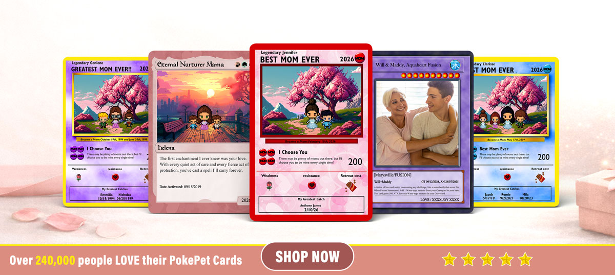 Build a premium PokéPet Couples Binder with up to 40 personalized cards—custom names, traits, moments, and memories.